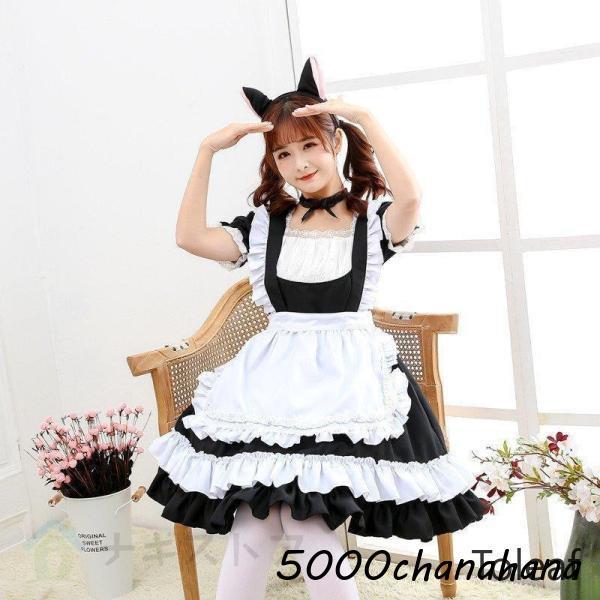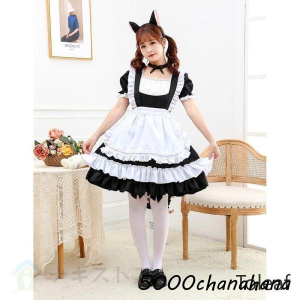 コスプレ メイド服 メイド エプロン 4点セット 可愛い 衣装 ロリータ コスチューム 学園祭 文化祭 パーティー 制服