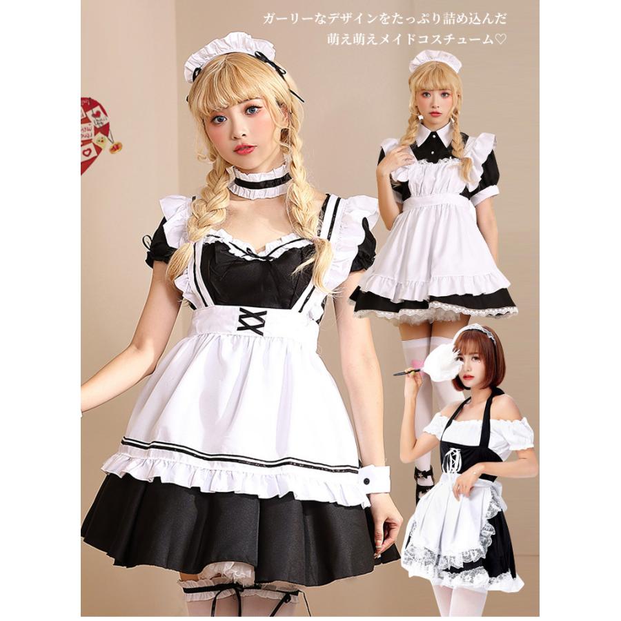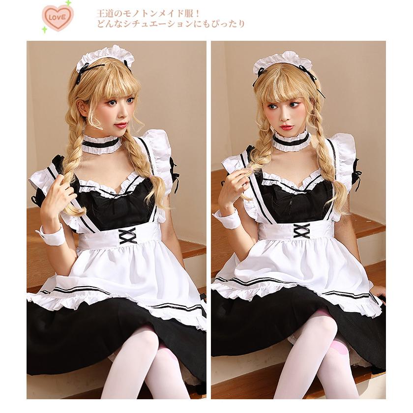 コスプレ 仮装 メイド 服 ゴスロリ 萌え 衣装 女装 フリル ロリータ かわいい カチューシャ付き セットウェイトレス レディース コスチューム