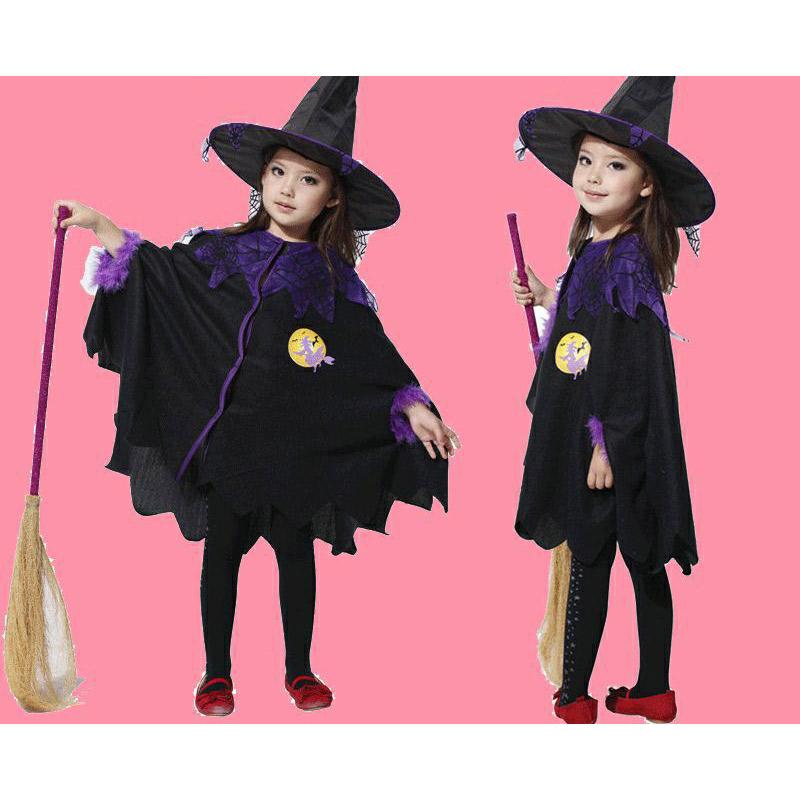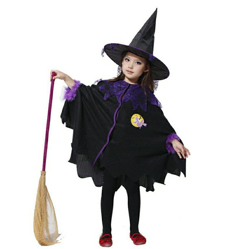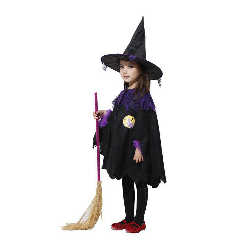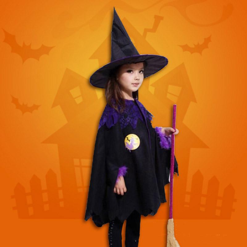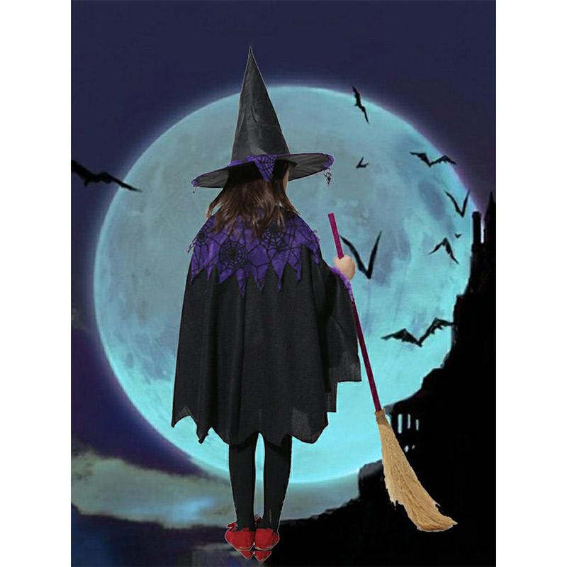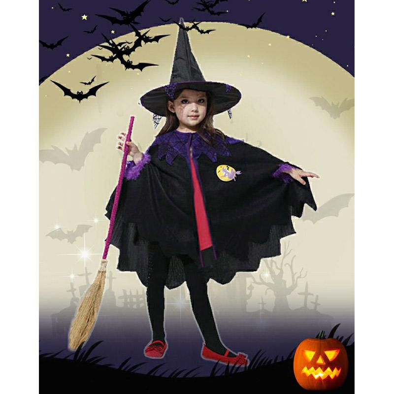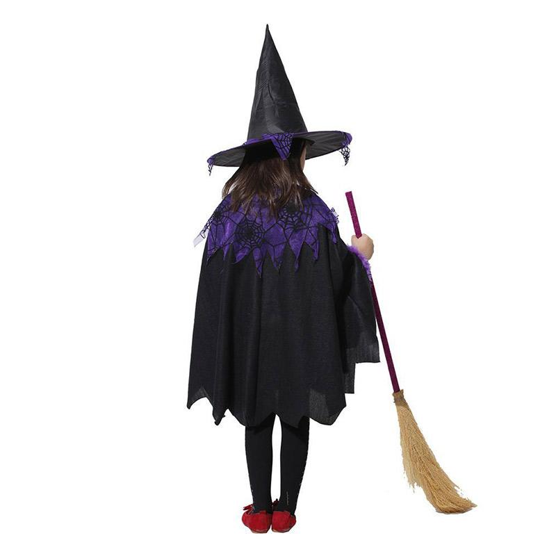 ハロウィン仮装 魔女 キッズ用 コスチューム コスプレ衣装 マント 帽子 2点セット 魔法使い 子供 女の子 かわいい 定番 人気