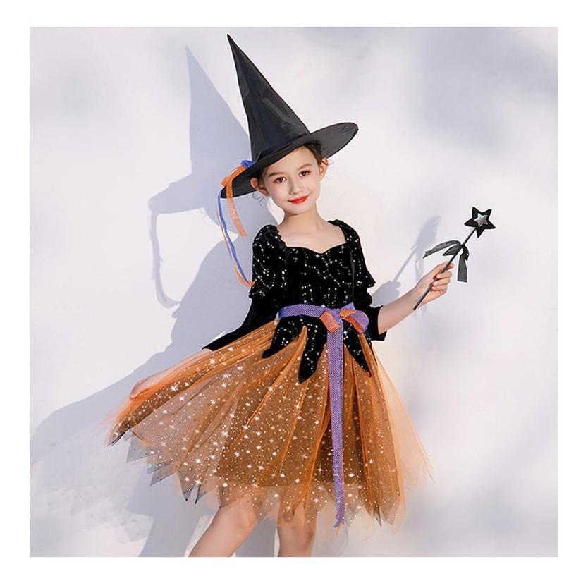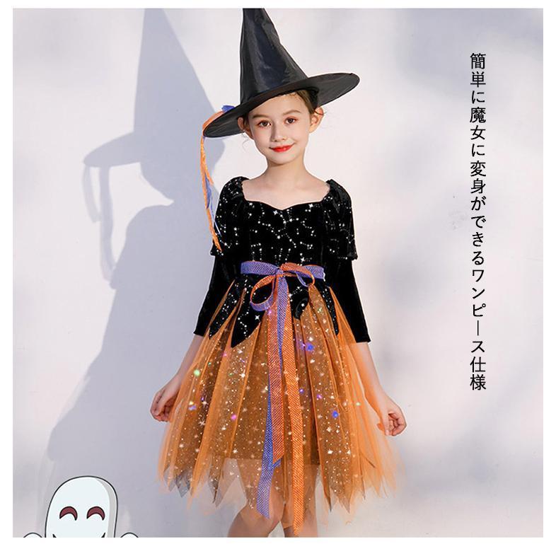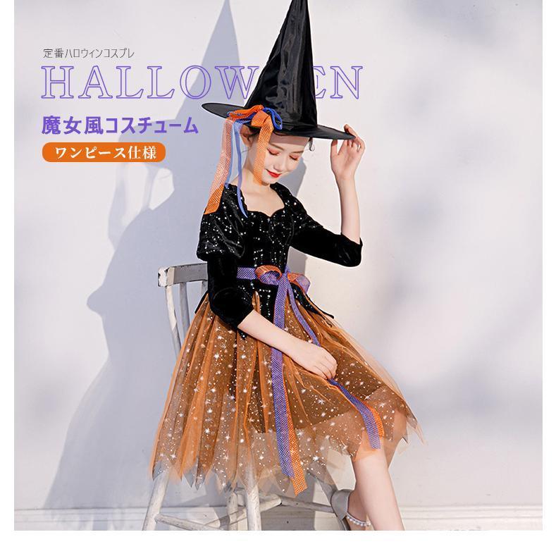 ハロウィン コスプレ 子供 魔女風 コスチューム 可愛い お姫様 仮装 衣装 キャラクター ハット ワンピース 2点セット