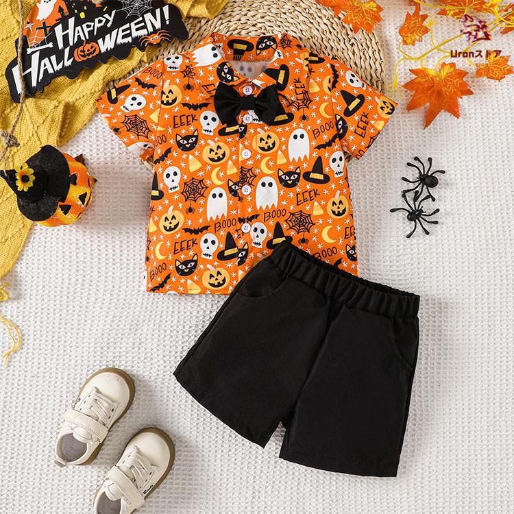 ハロウィン 衣装 子供服 かぼちゃ シャツ パンツ 仮装 2点セット ベビー 女の子 男の子 赤ちゃん オレンジ コスプレ キッズ コスチューム かわいい かっこいい