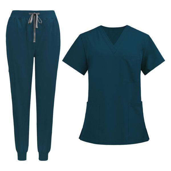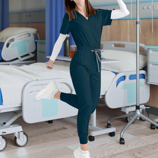 [素材]女性ナースユニフォームスクラブセットはポリエステル素材で作られており.通気性があり.軽量で快適に着用できます.