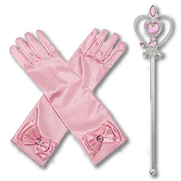 プリンセスジュエリー ローズピンク 5点セット☆ コスプレ アクセサリーセット ティアラ イヤリング ステッキ 指輪 手袋 プリンセス ハロウィン 魔法 ディズニー