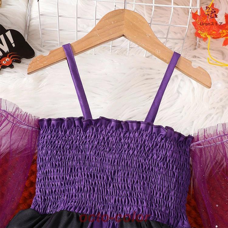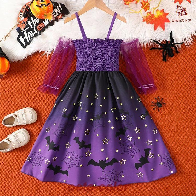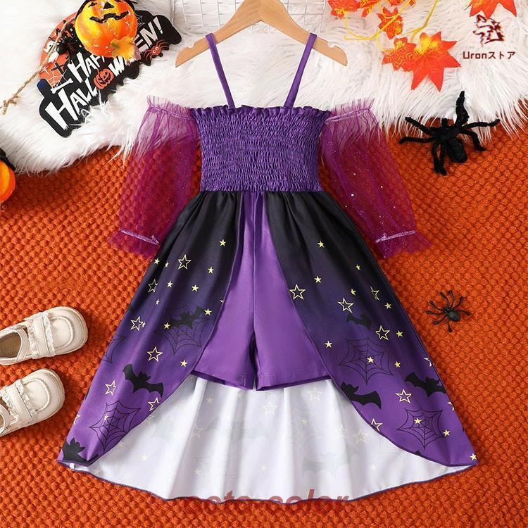 プリンセスドレス 仮装 衣装 子供服 コスプレ ワンピース 女の子 赤ちゃん こども パープル 紫 キッズ コスチューム コウモリ柄 小悪魔 魔女 巫女 星