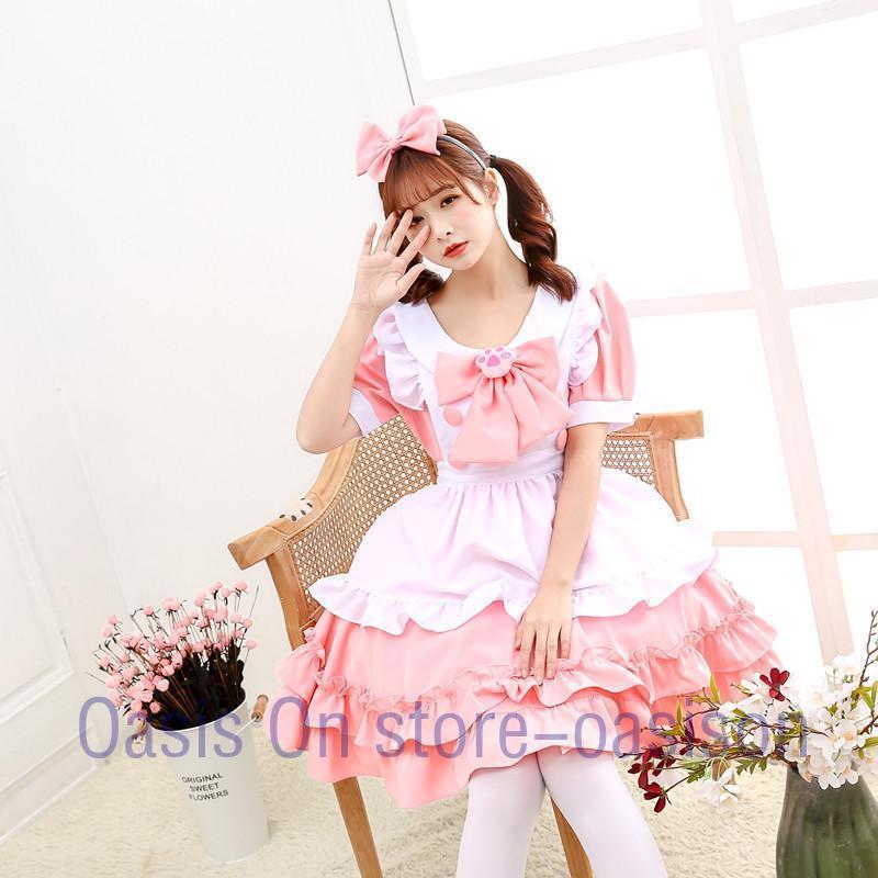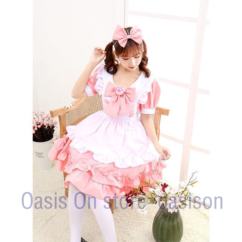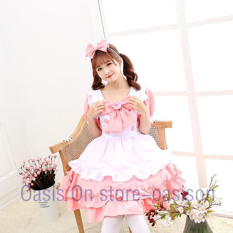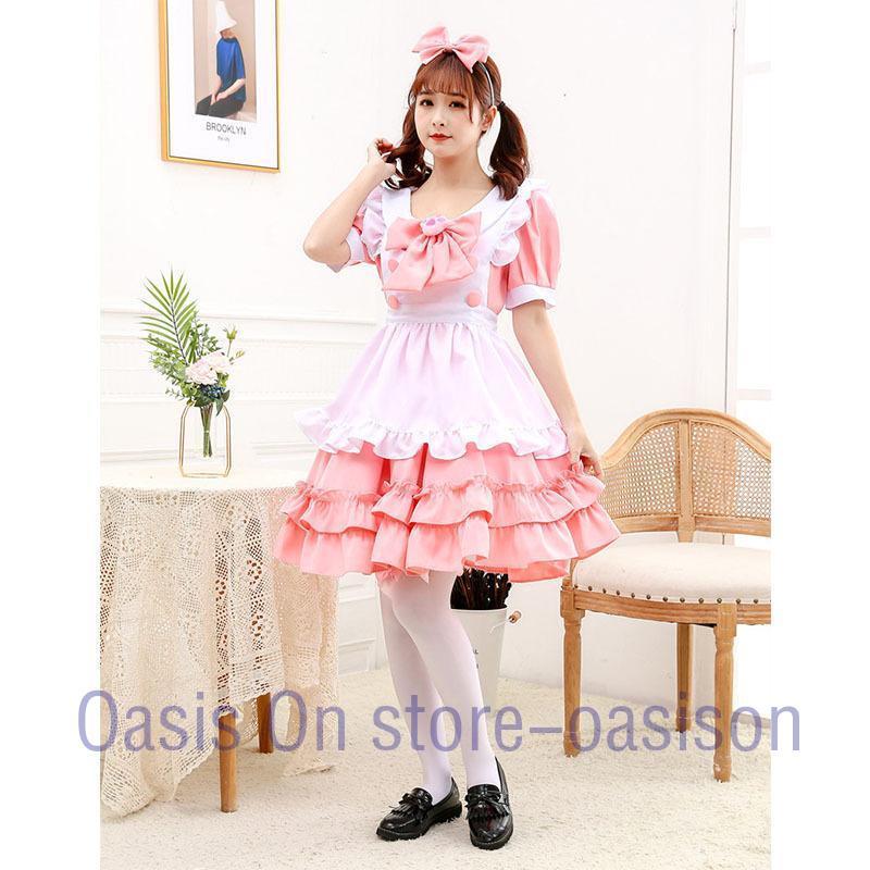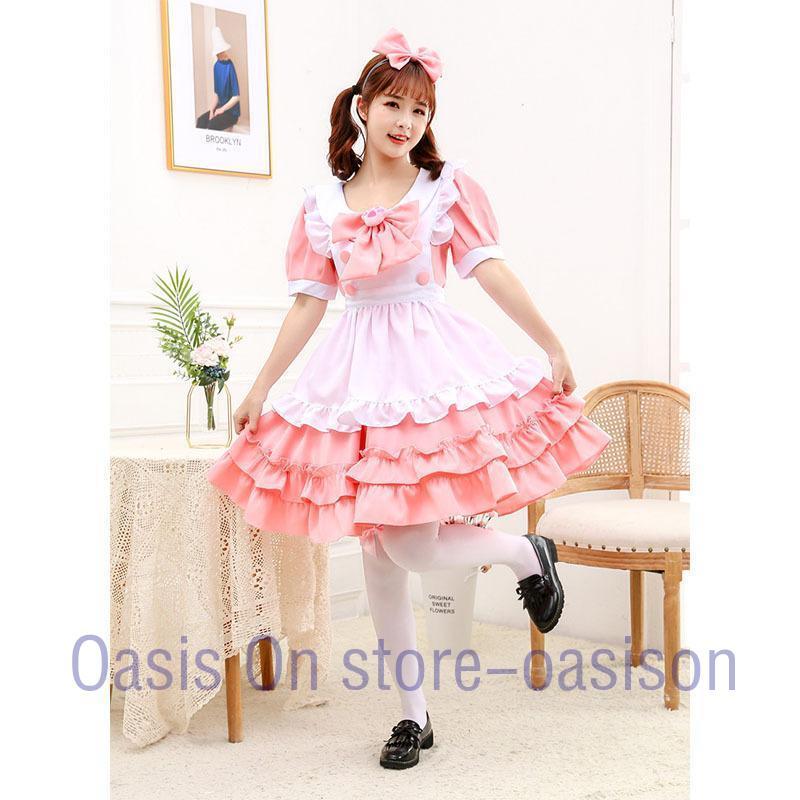 メイド コスプレ メイド服 コスチューム 衣装 仮装 ピンク 白 ワンピース 4点セット レディース ロングドレス パーティー変装 魔法使い ロリータ