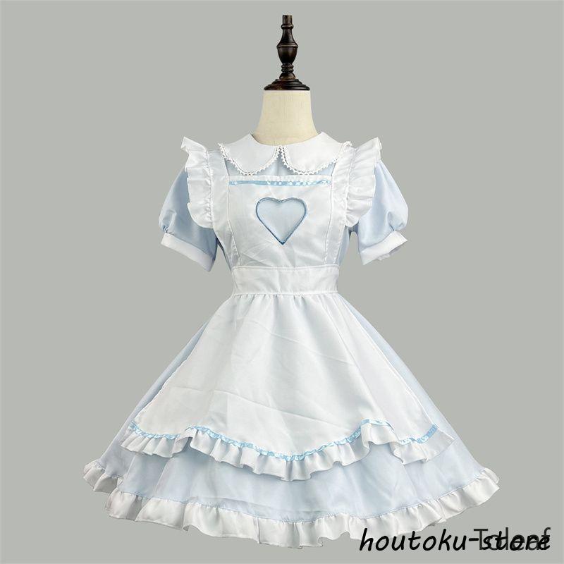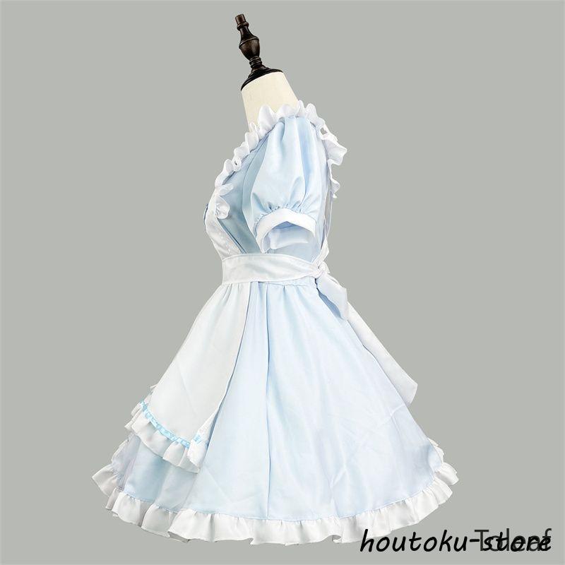 メイド 服 コスプレ 仮装 衣装 ゴスロリ 萌え 女装 フリル 猫メイド かわいい カチューシャ 付き セット ウェイトレス レディース