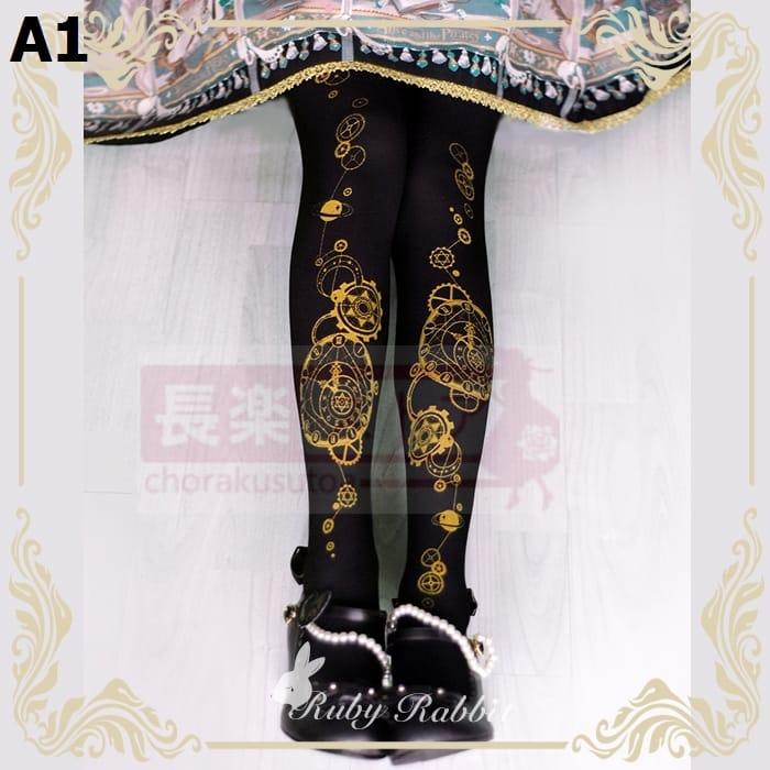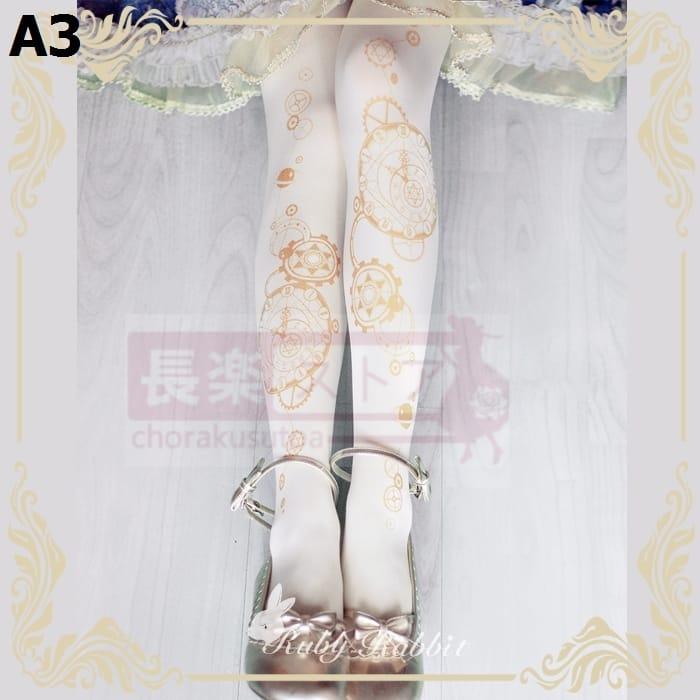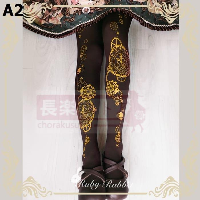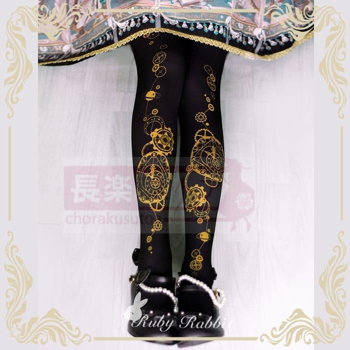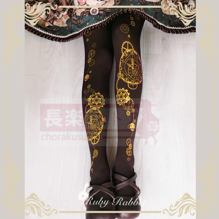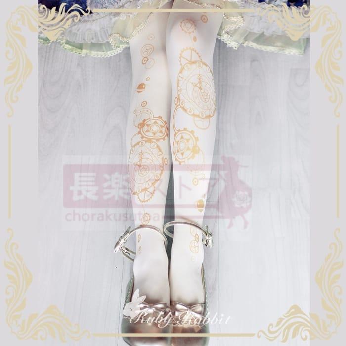 ルビーラビット占星時計オリジナルロリータタイツ春夏ゴールドプリントソックス
