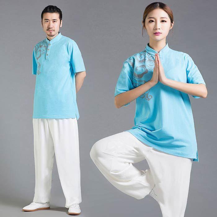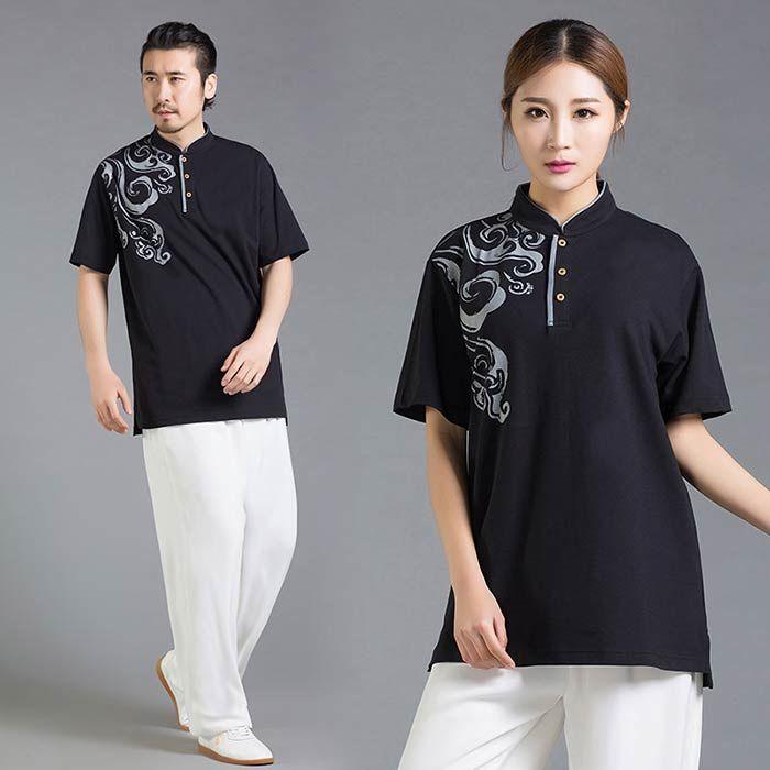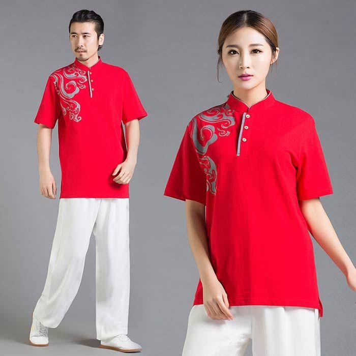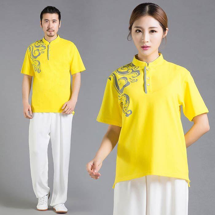 太極拳 半袖 tシャツ 武術Tシャツ 太極拳ウェア 太極拳服 チャイナカラー スリット入り カンフー服 スポーツウェア 練習着 表演服 団体服