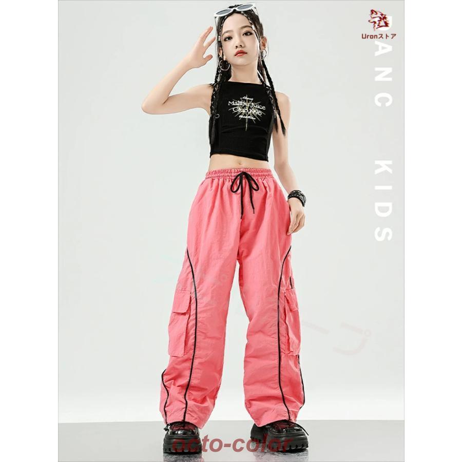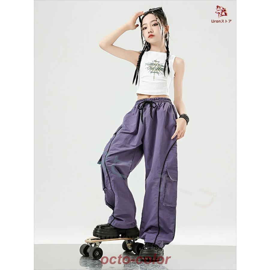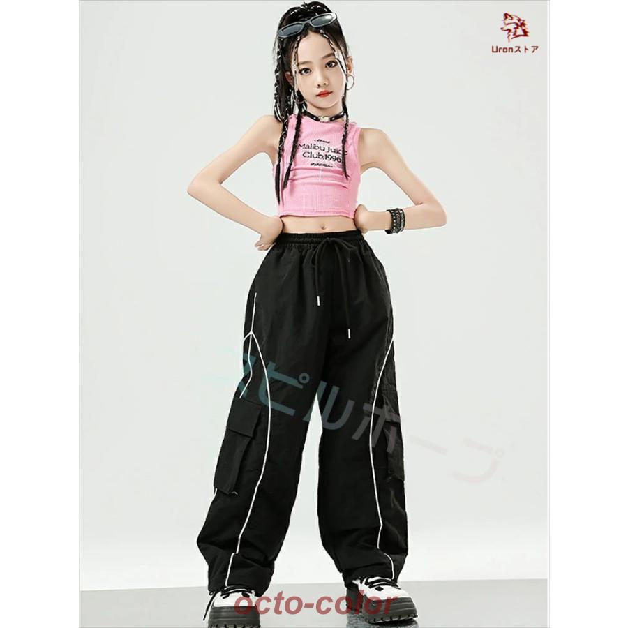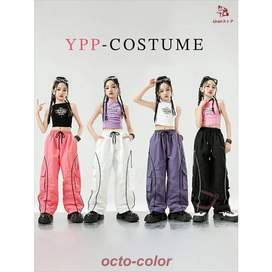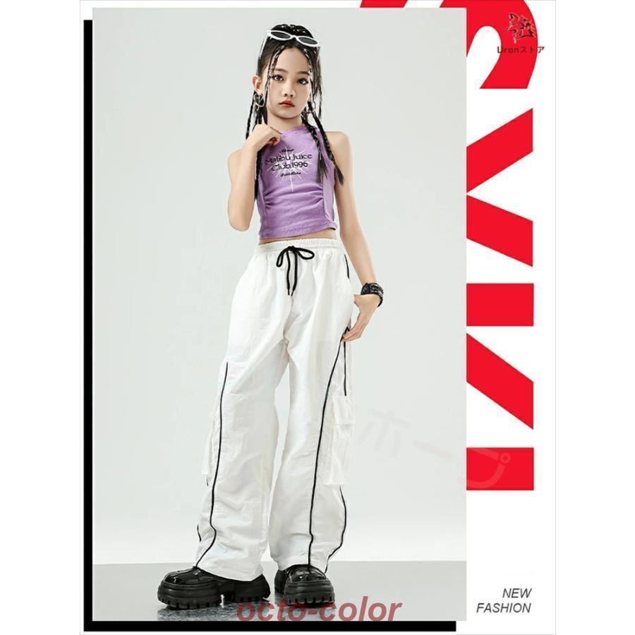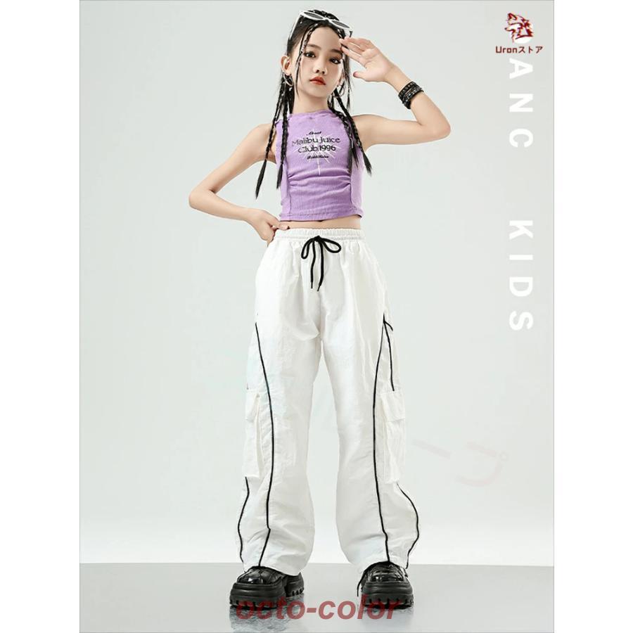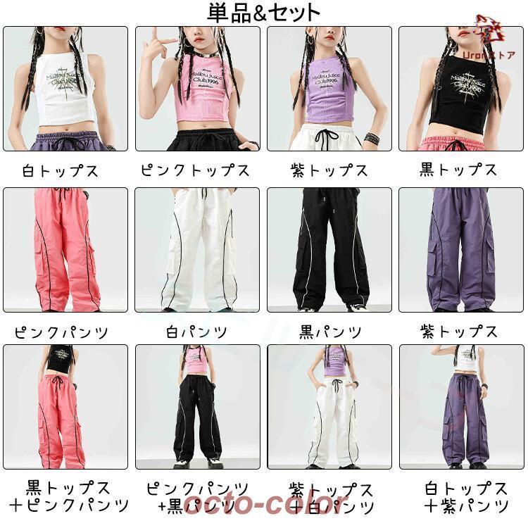 白 黒 ピンク 紫 へそ出し キッズ ダンス衣装 セットアップ トップス 柄シャツ ショート丈 サルエルパンツ 反射パンツ 女の子 ストレート ファション ジャズダン
