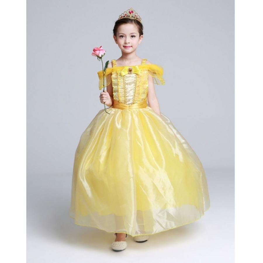 美女と野獣 ベル Belle 子供 ドレス コスチューム 豪華セット プリンセスドレス ティアラ グローブ 100 110 120 130