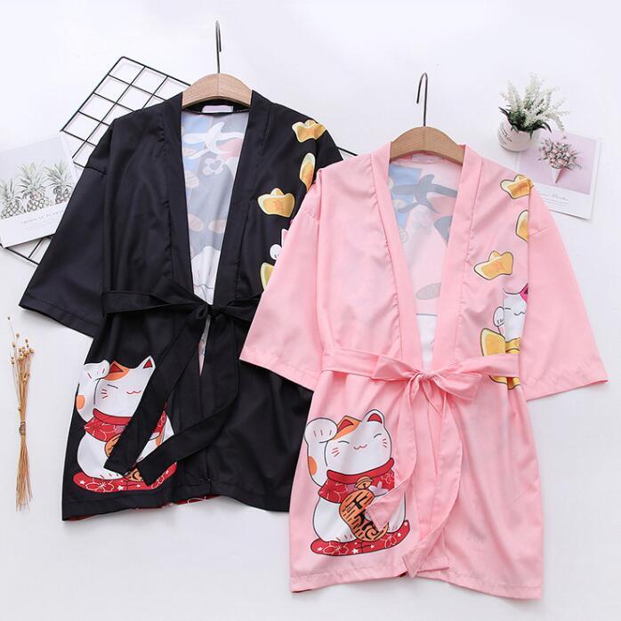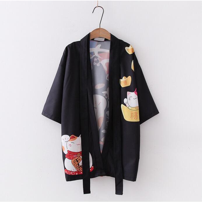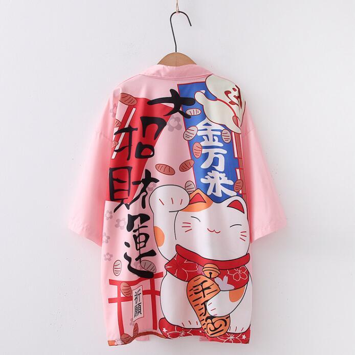 羽織 着物風 レディースカーディガン ベルトあり 着物風 招き猫プリント羽織 ボレロ 5分袖 和風 浴衣風アウター 夏 ルームウェア UVカット羽織 カジュア