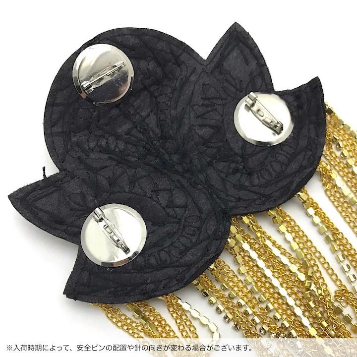 ※裏に付いている安全ピンだけだとモチーフが肩から浮いてしまう場合がございます。フェルト生地でできているので、縫い付け(補強)も簡単です!ダンス・コスプレ衣装などに使用する場合は、縫い付けがオススメです。