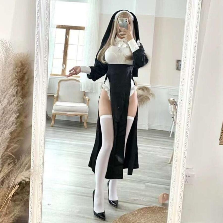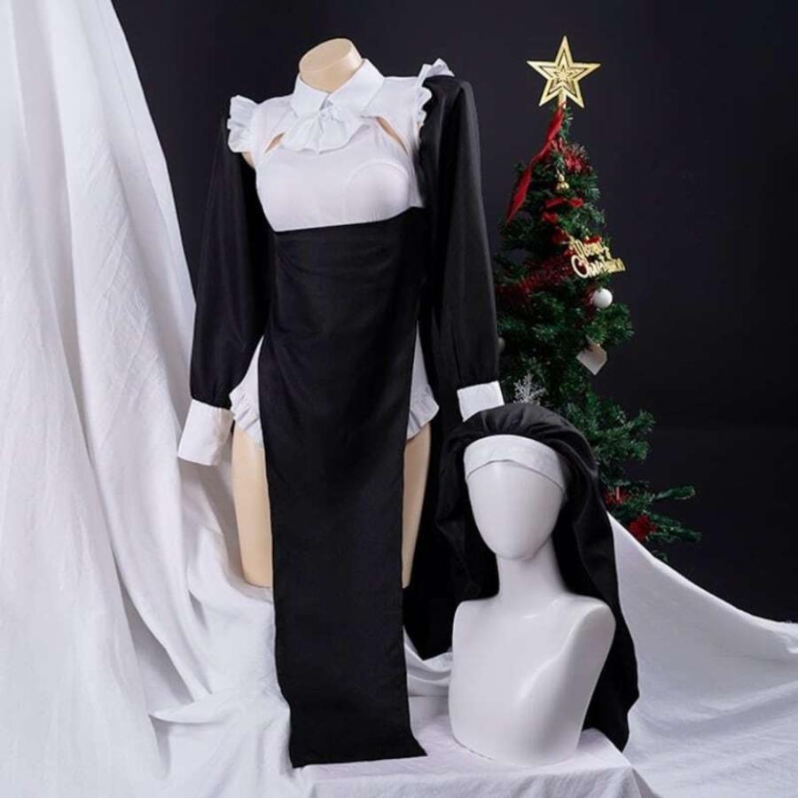 (5点セット)修道女 仮装 コスチューム S M L XL セクシー ロング ワンピース