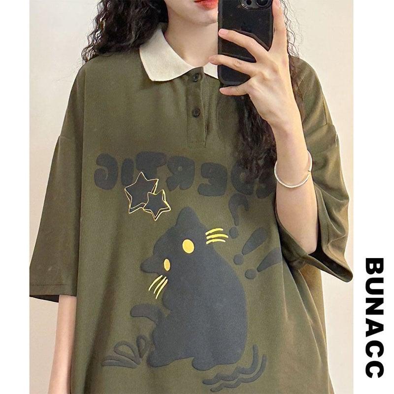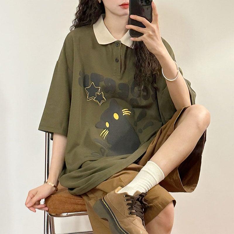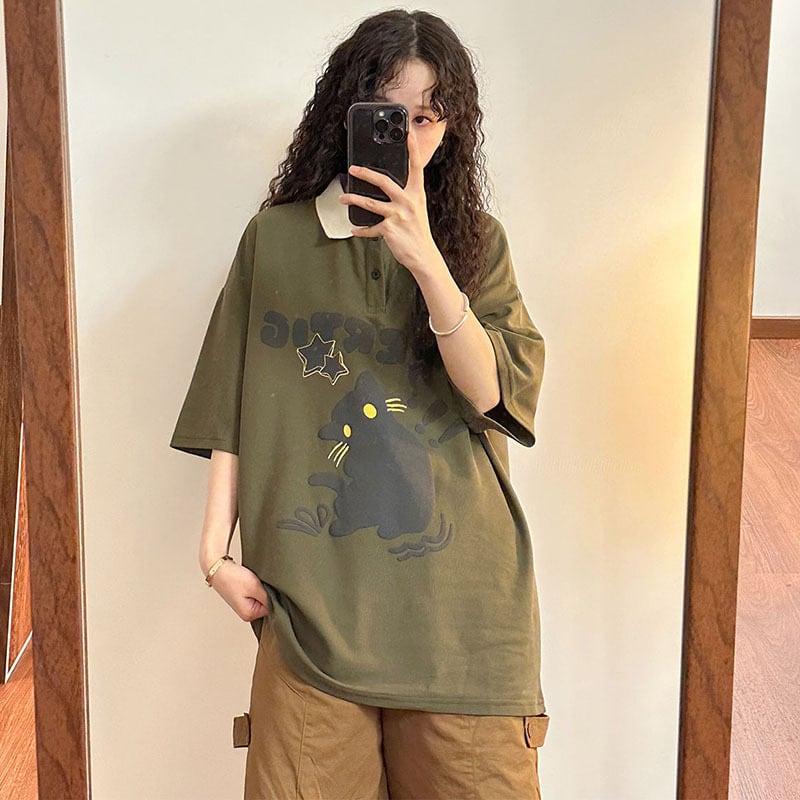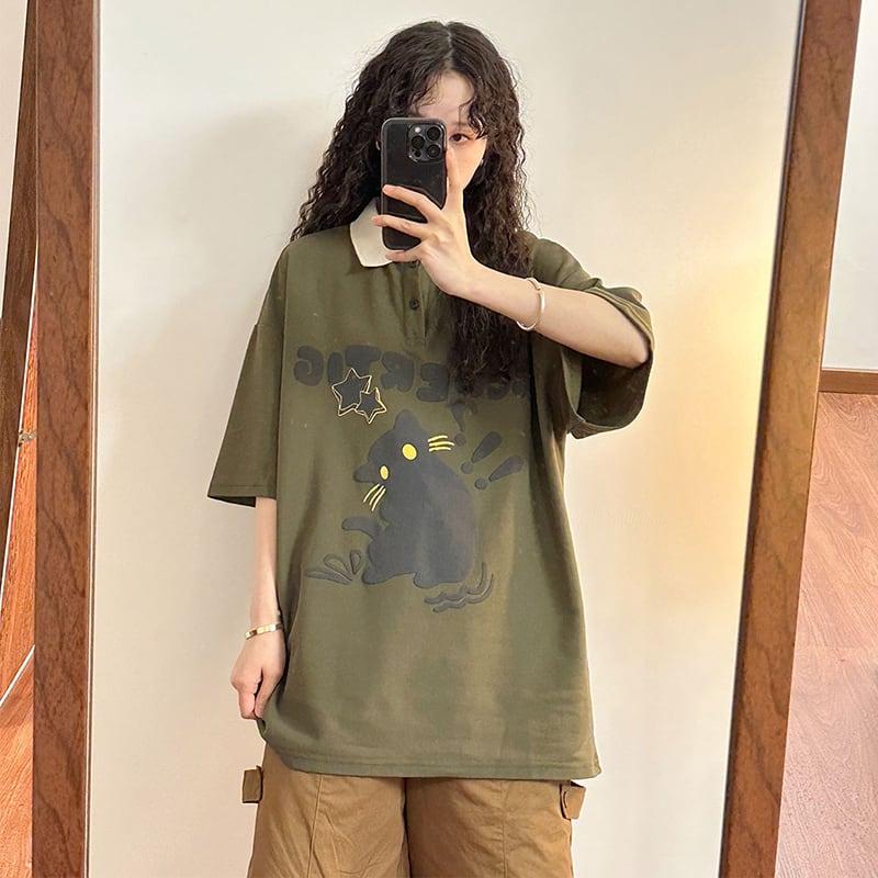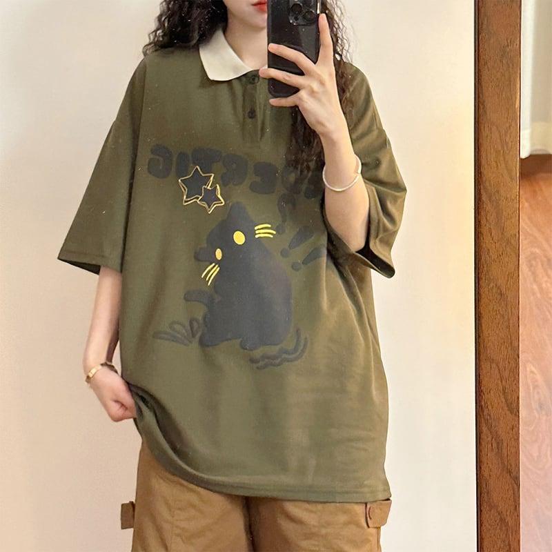 2color トップス 半袖 男女兼用 メンズ 猫 ねこ ネコ ホワイト グリーン