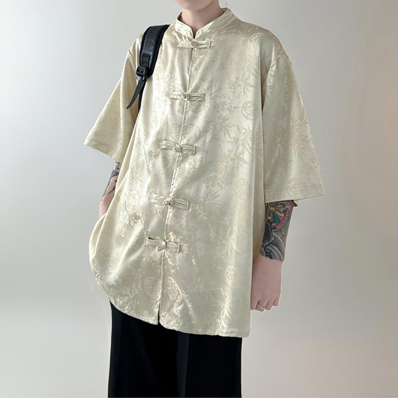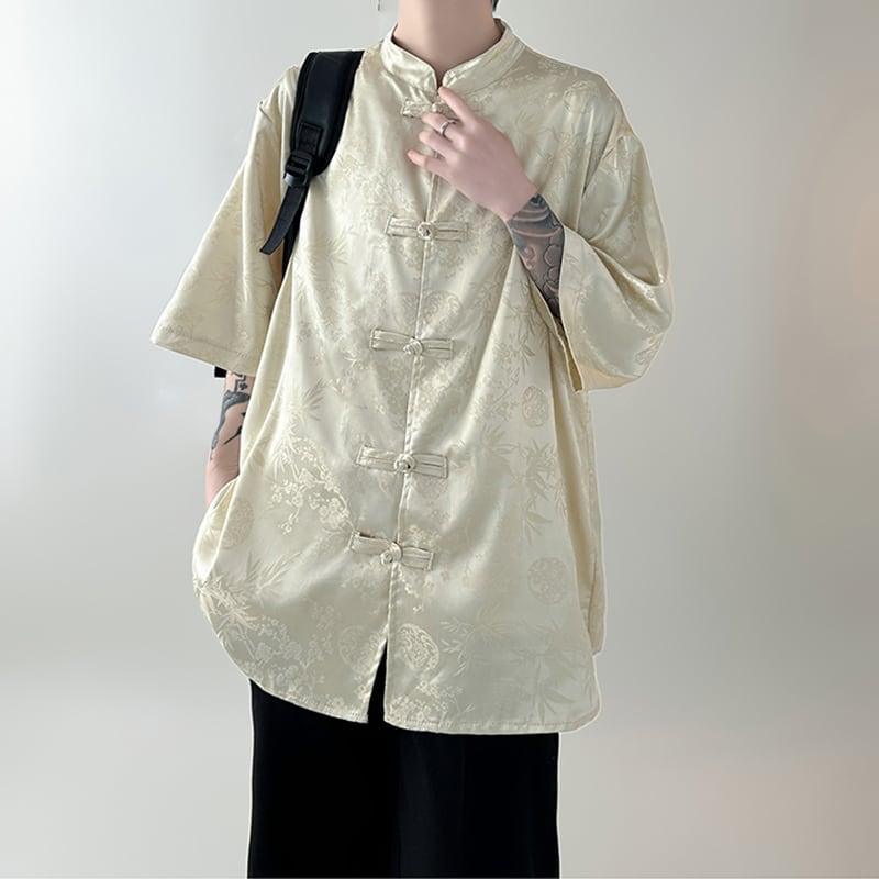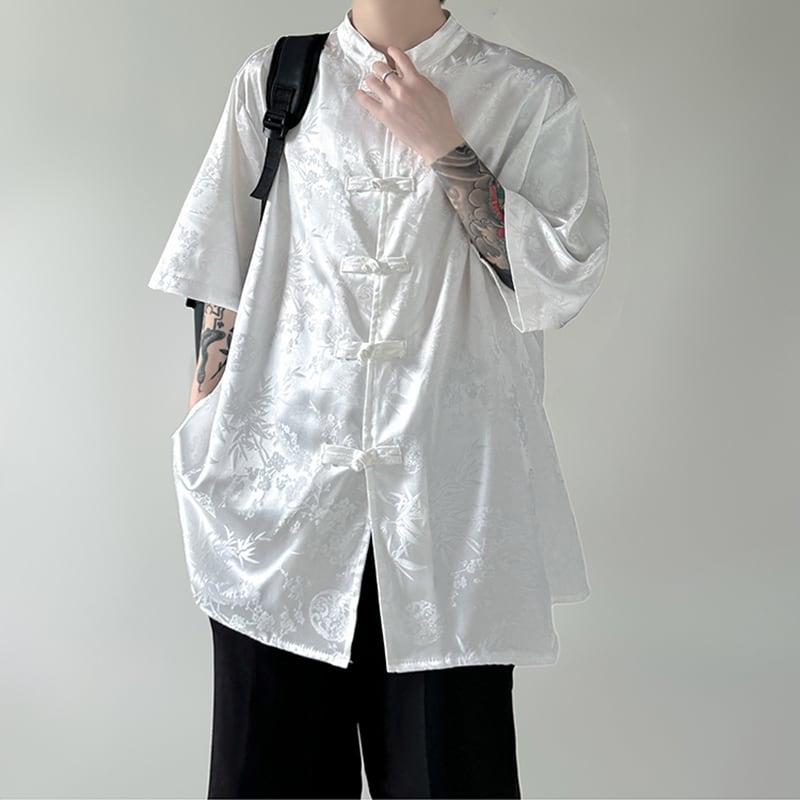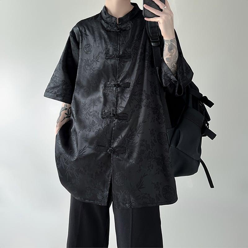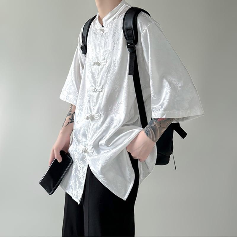 3color トップス プリント 男女兼用 メンズ 黒 白 中華服 半袖シャツ