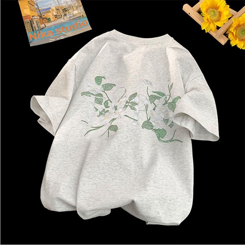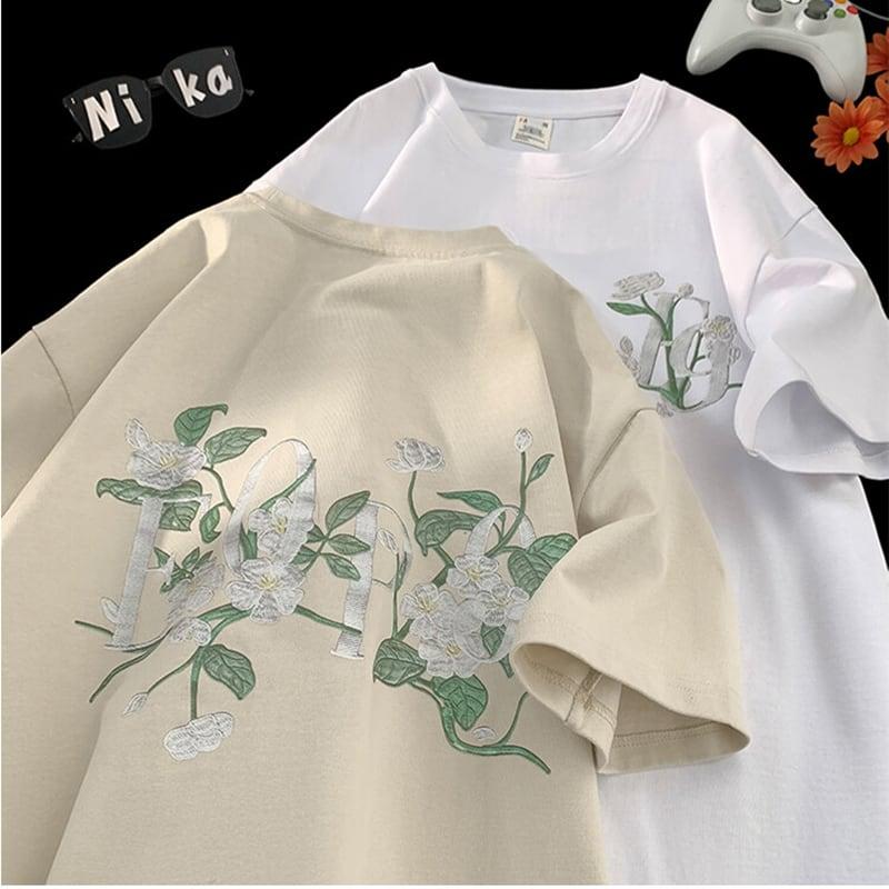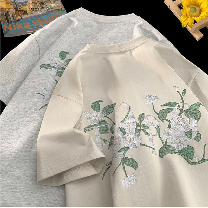 4color Tシャツ 半袖 花柄 男女兼用 メンズ カジュアル 合わせやすい