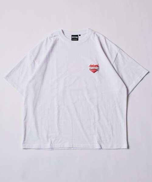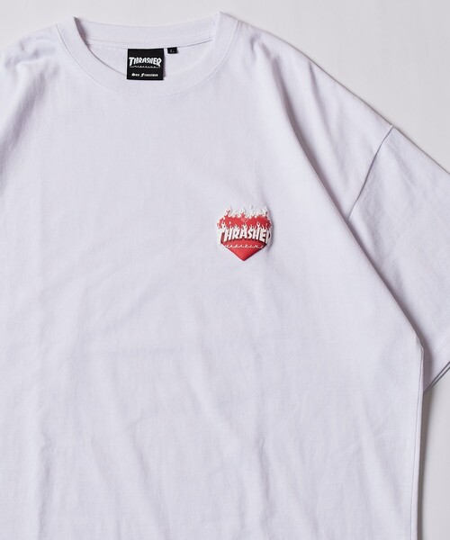 参考商品名:【限定展開】THRASHER×FREAK’S STORE/スラッシャー 別注 ビッグシルエット フレイムハートロゴ クルーネックTシャツ/発泡プリント