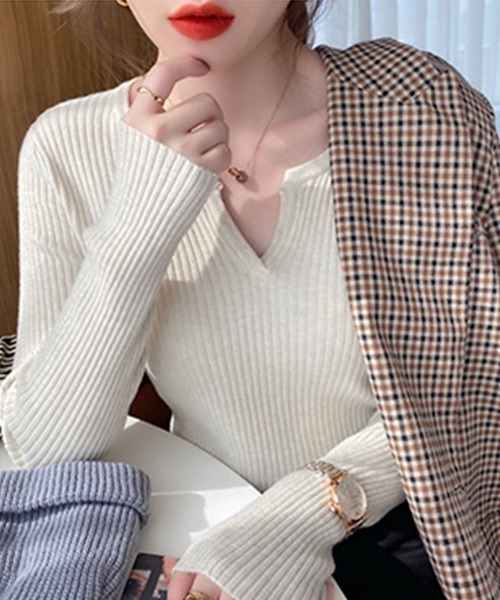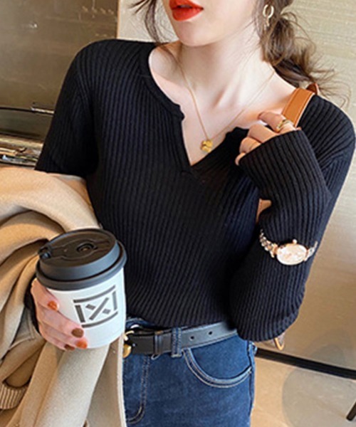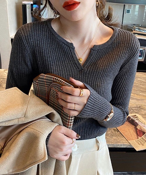 商品名:キーネックリブニット