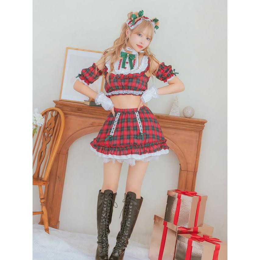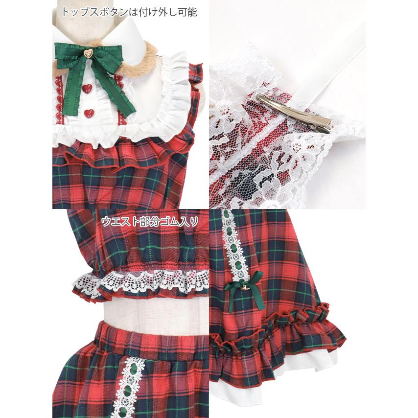 Tika サンタ コスプレ サンタコス 5点set クラシカル チェック レース フリルテディベア フレア スカート アニマル サンタコスプレ